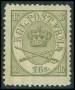 1870. 16 sk. oliven linietakket. Attest Grønlund.