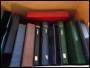 Flyttekasse med arkivæsker med sorteringsbakker inkl. Bundter mv.