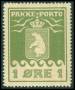 1905. 1 øre olivengrøn, lidt pletter i limen. AFA 11.000,-