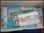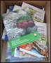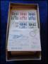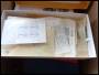 Kasse med lille kartotek, marginalblokke, FDC og æske med miniark mv.