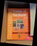 Flyttekasse med forskellige lande i bøger bl.a. Australien, USA, Polen og Ungarn m.m.