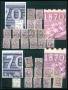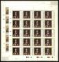 1940. 20/15 øre rød i 8-blok med delvis manglende overtryk, et andet helark har ligget på tværs (1 mærke er hængslet og 1 mærke med lille tyndhed).