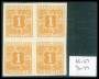 1921-25. 1 øre orange pos. 66-67/76-77 utakket 4-blok uden lim. Attest LN.