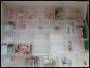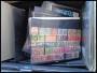 Flyttekasse med sorteringsbakker, meget usorteret inkl. andre lande