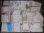 Flyttekasse med rod bl.a. ældre breve, postkort, kilvare og cigaræskemed tofarvede m.m.