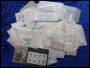 Kasse med 131 breve/pakkekuverter stemplet til samlerbrug fra Stampex inkl. Højværdier.