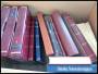 TILBEHØR. Flyttekasse med album til Tyskland og Schweiz inkl. Fortyksalbum samt sider til med lommer til Island og Åland.