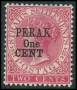 PERAK. 1886. 1/2 c. rosa med dobbelt overtryk uden lim. SG. 1.200 £