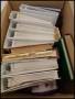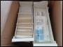 Kasse med lagerbøger/samling og salgsmappe inkl. Lidt bedre mærker samt poser og plancher mv.